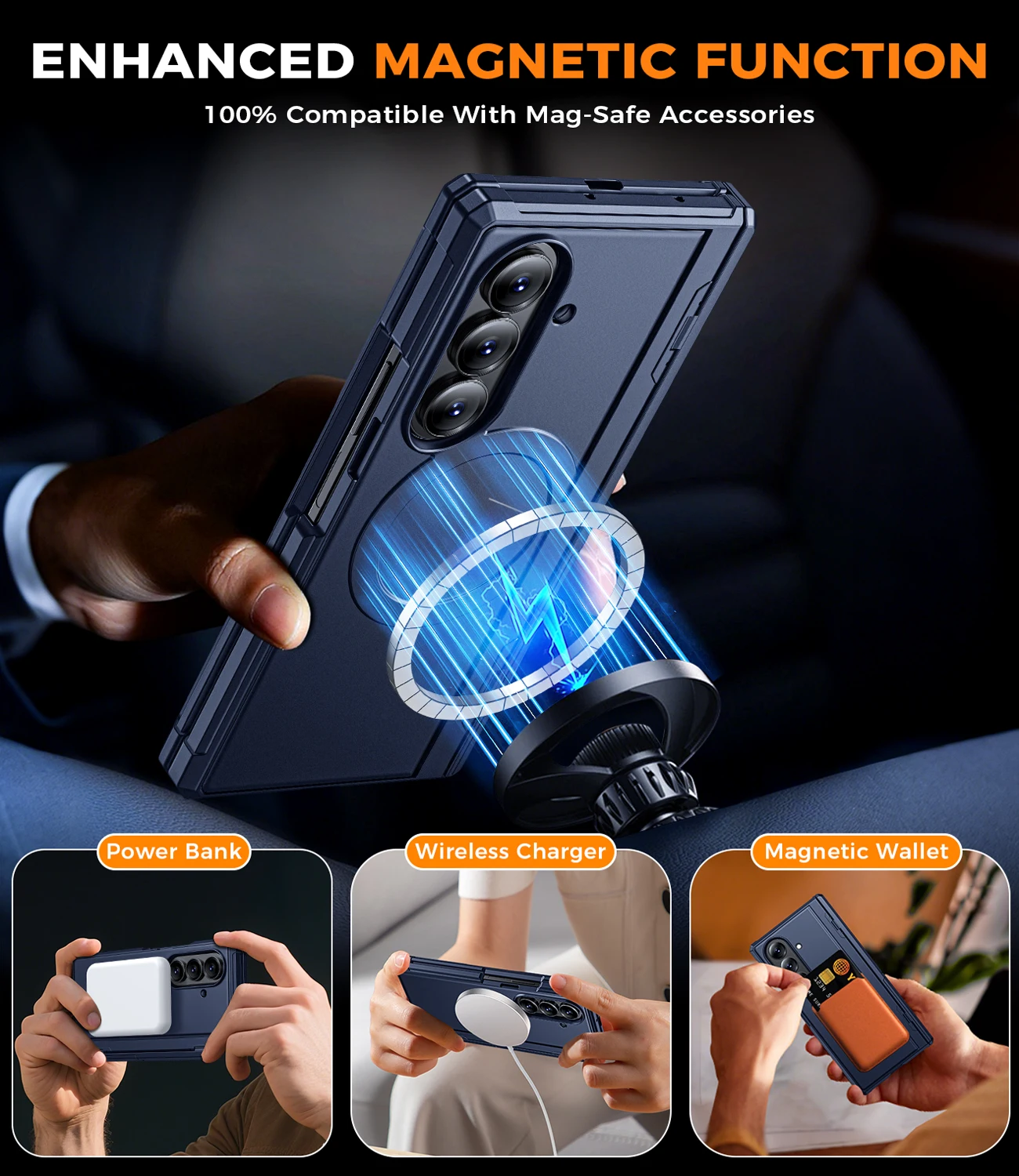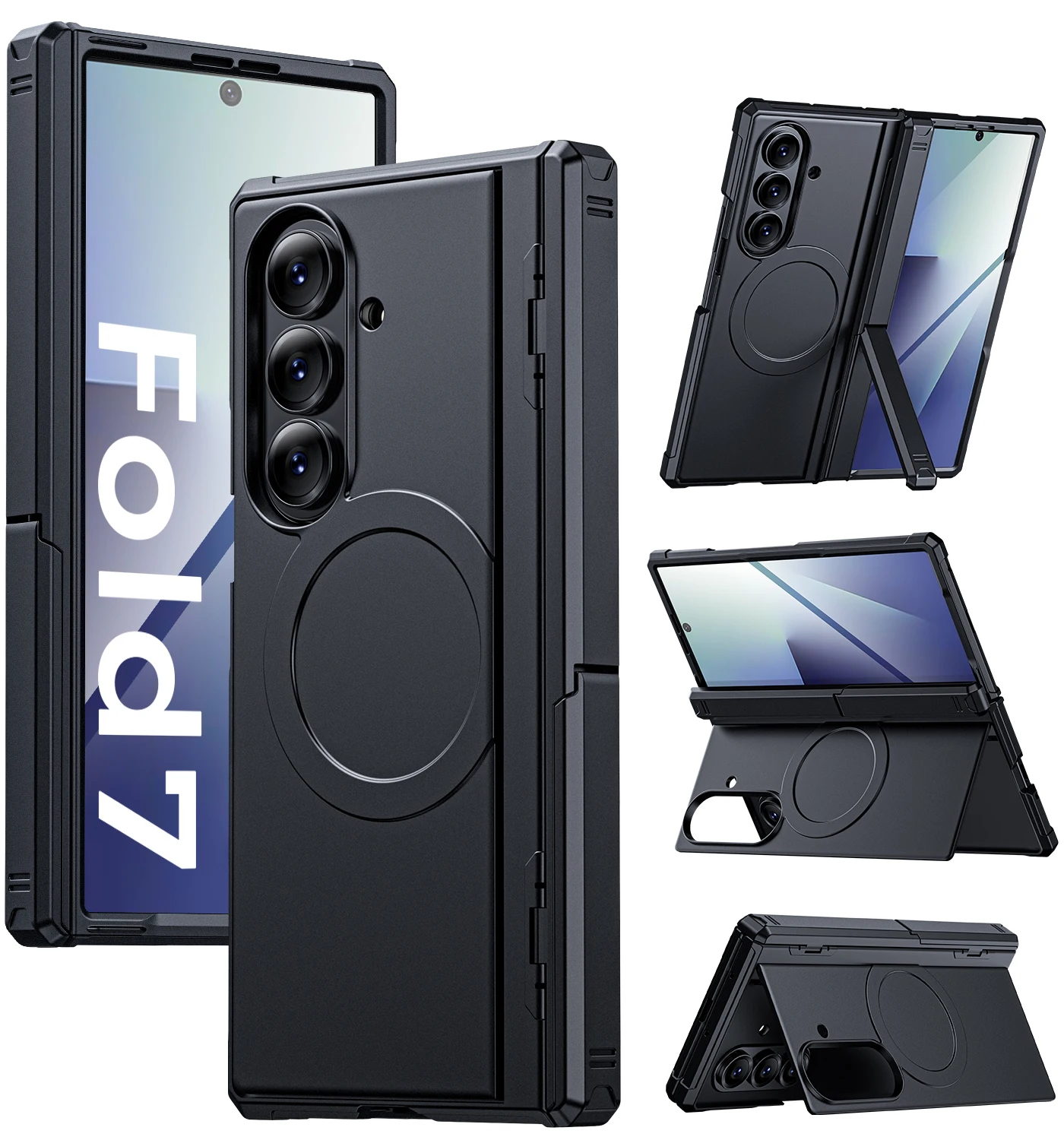 Shockproof Hinge Protection Case For Samsung Galaxy Z Fold 7 With Screen Protector Kistand Magsafe Wireless Charging Case