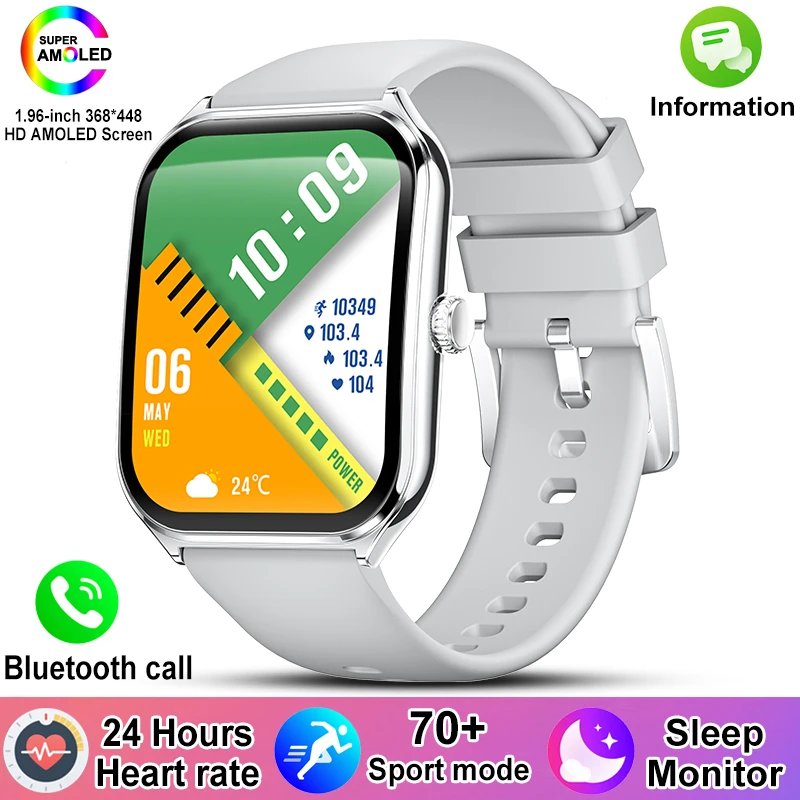 Watch features 12: Large-screen HD display: 1.96-inch AMOLED 3D screen, with sensitive response speed and high-definition display. Convenient for viewing notifications, answering phones and making calls.