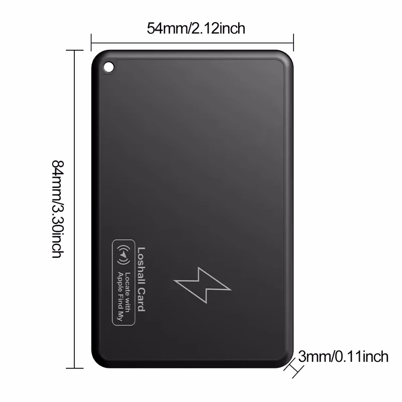 Feature: 1. Ultra-Thin Design:The wallet tracker card is incredibly slim, approximately the size of two credit cards and only 3mm thick. Easily slip it into your wallet, luggage tag, or other items to locate lost belongings effortlessly. 2. Compatible with Apple Find My App :Add your wallet finder to the Find My app on your device compatible with Apple iOS . Use Bluetooth-Compatible to find it nearby or leverage the Find My Network's GPS locator to track it globally through hundreds of devices. 3. Proactive Loss Prevention:Receive notifications when you leave items behind, and use Lost Mode to help retrieve them. The Find My app sends alerts to iPhone, actively preventing the loss of your wallet or ID. 4. Long Battery Life with Wireless Charging:The thin GPS item finder boasts a battery life of up to 3 months and supports wireless charging, eliminating the need for special charging cables. It's reusable and built to last. 5. Waterproof and Adventure-Ready:The smart card tracker is designed to withstand accidental spills, splashes, and even immersion, ensuring it remains functional no matter where your adventures take you. Specification: Note: 1 x wallet tracker card